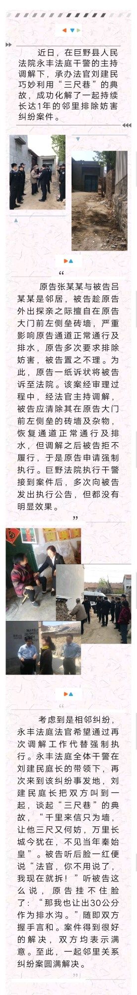 永丰法庭法官巧调解,“三尺巷”典故化纠纷